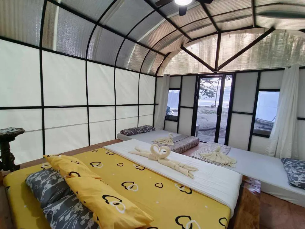 Bring everyone together in this spacious family glamping room with 3 beds and refreshing air-conditioning. Panoramic sea views set the backdrop for your island getaway. Ideal for groups who want to relax, reconnect, and enjoy the beauty of the island. In the spirit of glamping, this includes shared bathroom facilities.